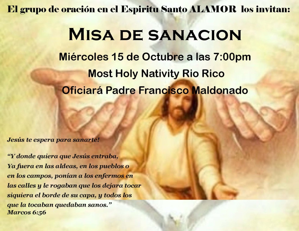 La Adoración Eucaristica seran los Miércoles despues de la misa de las 9:00am -- 12:00pm mediodia.